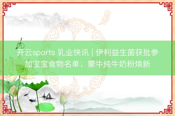 开云sports 乳业快讯 | 伊利益生菌获批参加宝宝食物名单;蒙牛纯牛奶粉焕新