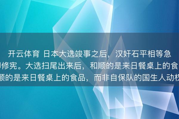 开云体育 日本大选竣事之后,汉奸石平相等急,以为该乘胜逐北速即修宪。大选扫尾出来后,和顺的是来日餐桌上的食品,而非自保队的国生人动权限