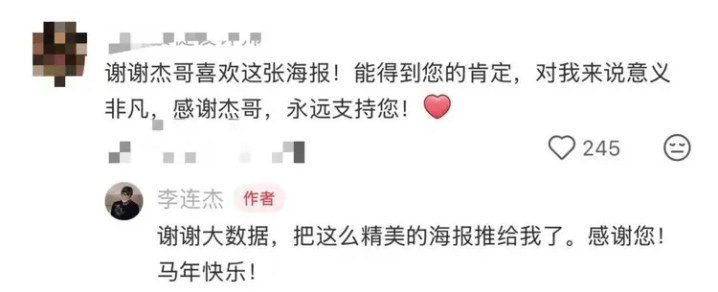 更让东说念主暖心的是,这份尽心莫得被亏负。李连杰不仅主动晒出海报与网友共赏,还挑升在驳斥区找到海报制作家,再次抒发谢忱,开云体育口吻里尽是惊喜与真诚:“谢谢大数据,把这样细致的海报推给我了。感谢您!马年惬心!”