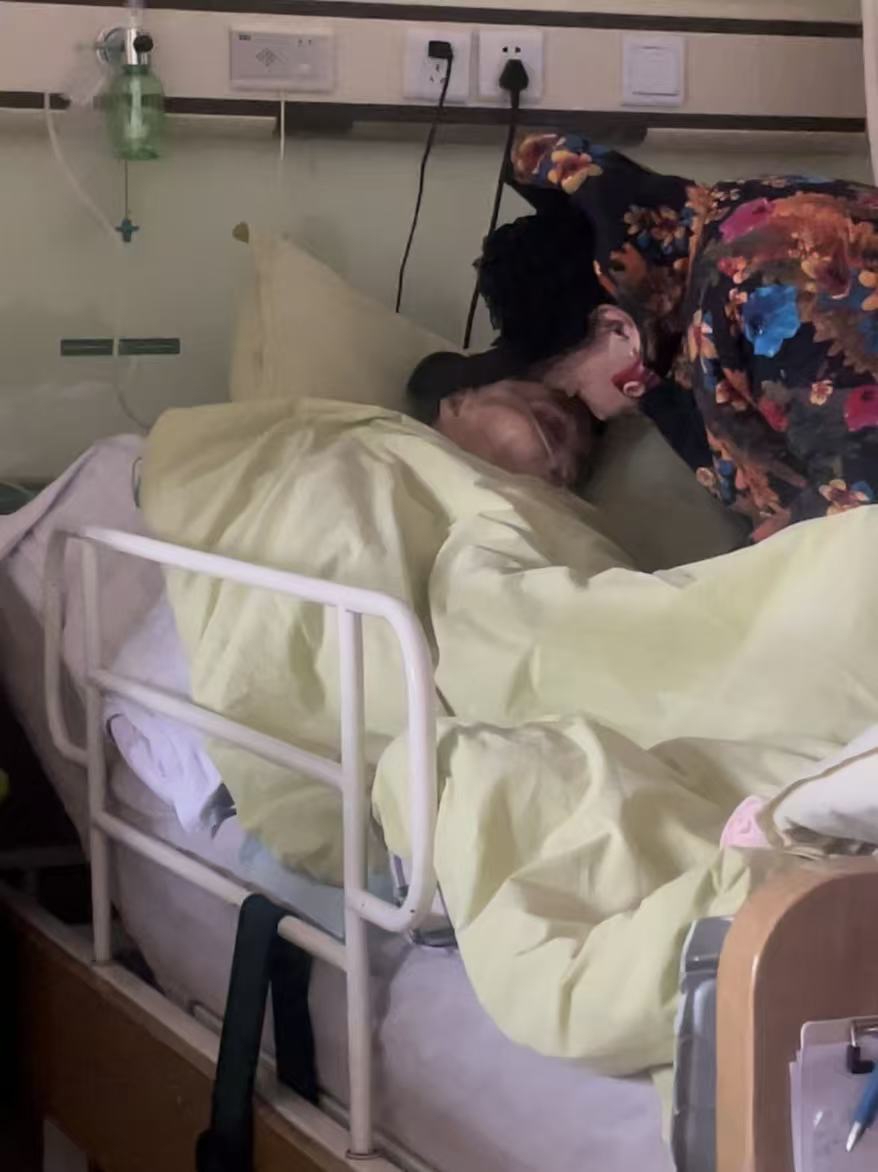 另一位同样是九十多岁的老东说念主,躺在床上的他早已上了呼吸机。他全身肿胀,看不清他的容貌,但能看到他的眼睛在眨动。李大姨说,前段时期这位老东说念主病情危险,差点没挺曩昔,他女儿深爱父亲,不思让他活受苦,推敲过撤机,但老东说念观念志力相比武断,最终挺了过来。